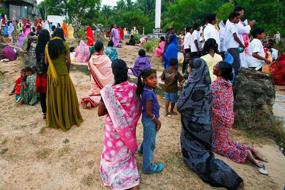 Pilger auf dem Weg zur katholischen Sonntagsmesse