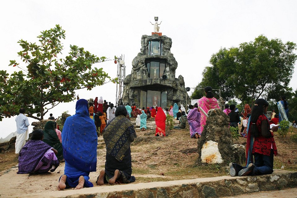 Pilger auf dem Weg zur katholischen Sonntagsmesse